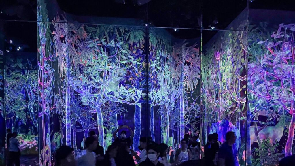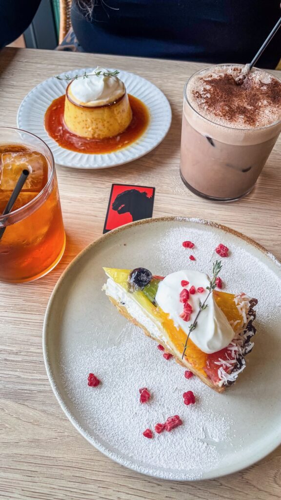 Nous reprenons brièvement le monorail pour nous rendre dans le quartier du TeamLab Planets. Nous avons des billets pour 17h30, et je me dis qu’on pourra se balader en attendant. Sauf que l’endroit est complètement bétonné et très moche. Nous trouvons quand même un café décent, le Na Café, pour nous poser avec des boissons fraîches et des gâteaux pas mauvais du tout.
