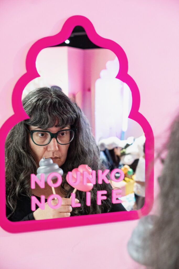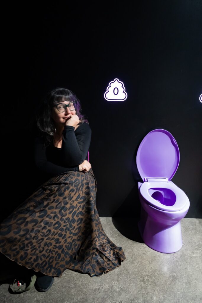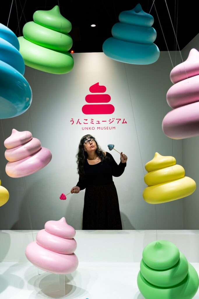 Nous commençons notre dernière journée au Japon par un tour en monorail jusqu’à l’île artificielle d’Odaiba. Photos avec le Gundam géant, puis musée du caca. Je m’attendais à un truc ludique mais éducatif, comme le musée des toilettes. En réalité, le caca est ici figuré par des choux en plastique aux couleurs pastels. Pas l’ombre d’une explication sur la digestion – juste des sets à selfies de plus ou moins bon goût et une tonne de jeux vidéos squattés par des enfants surexcités. C’est si abominablement bruyant que je ne tiens pas 20 minutes avant de me ruer vers la sortie. Un flop total.