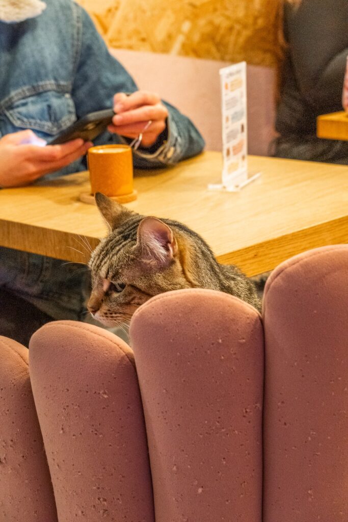 Je laisse mon sac à dos au vestiaire du centre Caumont le temps de faire un tour au Meow Cat’s Café. Il est sur ma liste depuis longtemps, mais un chouïa excentré, et il y a tant d’autres chouettes options de goûter dans le centre d’Aix que je n’ai jamais poussé jusque là. Je suis plutôt déçue: la salle exiguë et vite pleine se prête en réalité assez peu au contact avec les chats, dont aucun ne m’attire spécialement. Je continuerai plutôt à aller poupougner les pensionnaires de Mon Chat Pitre!