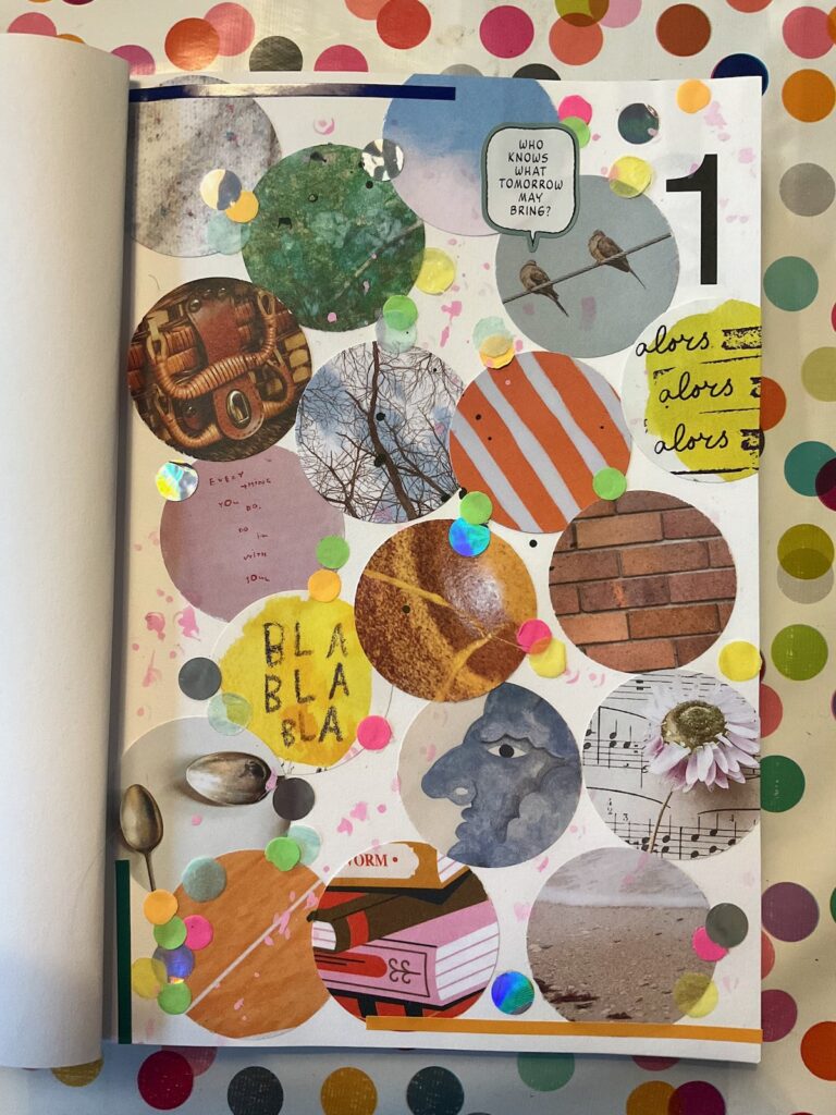 Par ailleurs, mon précédent projet 365 créatif étant tombé à l’eau fin février 2020, j’ai décidé d’en relancer un avec le moins de contraintes possibles pour qu’il ait des chances de tenir la distance. J’ai donc choisi un très beau carnet Marjolein Delhaas acheté chez Papier. Bien qu’un peu lourd à transporter pour moi qui passe ma vie entre deux trains, il a un format idéal et un papier épais qui devrait supporter à peu près tous les media. Mon objectif est juste de remplir une page par jour, peu importe comment. J’imagine que ce sera surtout des dessins, des collages et des doodles, mais j’ai également envie de m’essayer à la blackout poetry (« poésie par soustraction »).