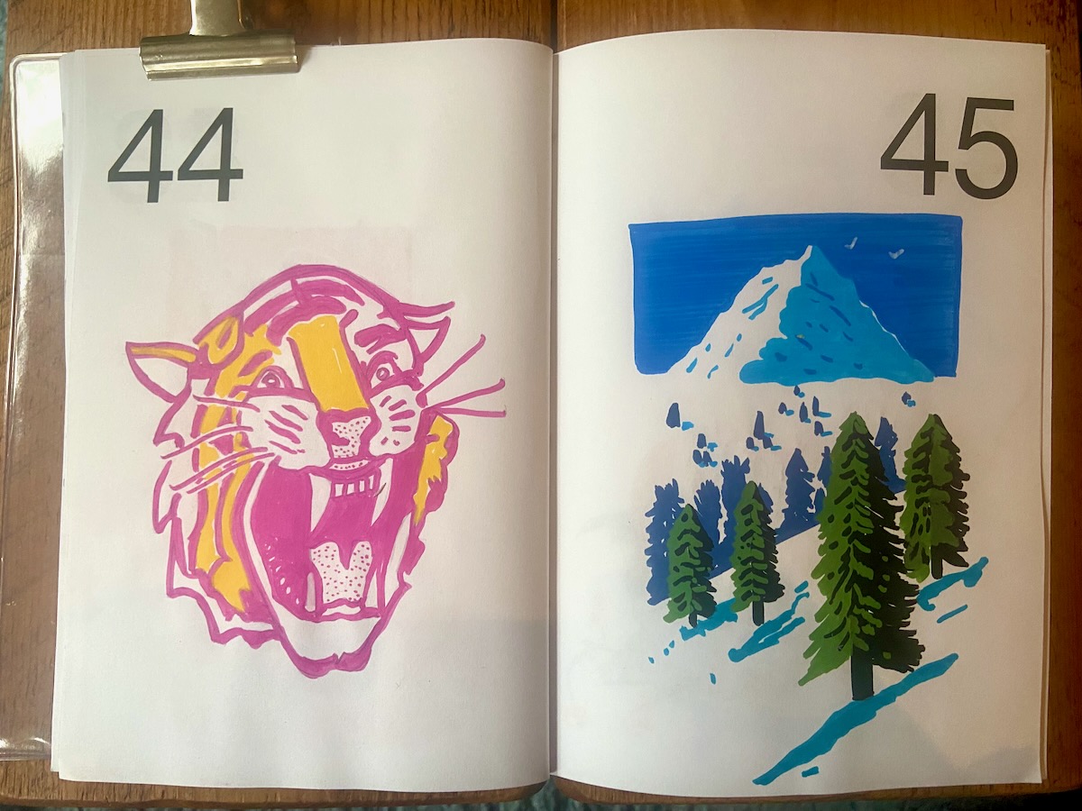 Très jolis dessins, surtout le 36 et le 51 ! Ce doit être très bénéfique et stimulant de changer d’outils à chaque page ou presque.