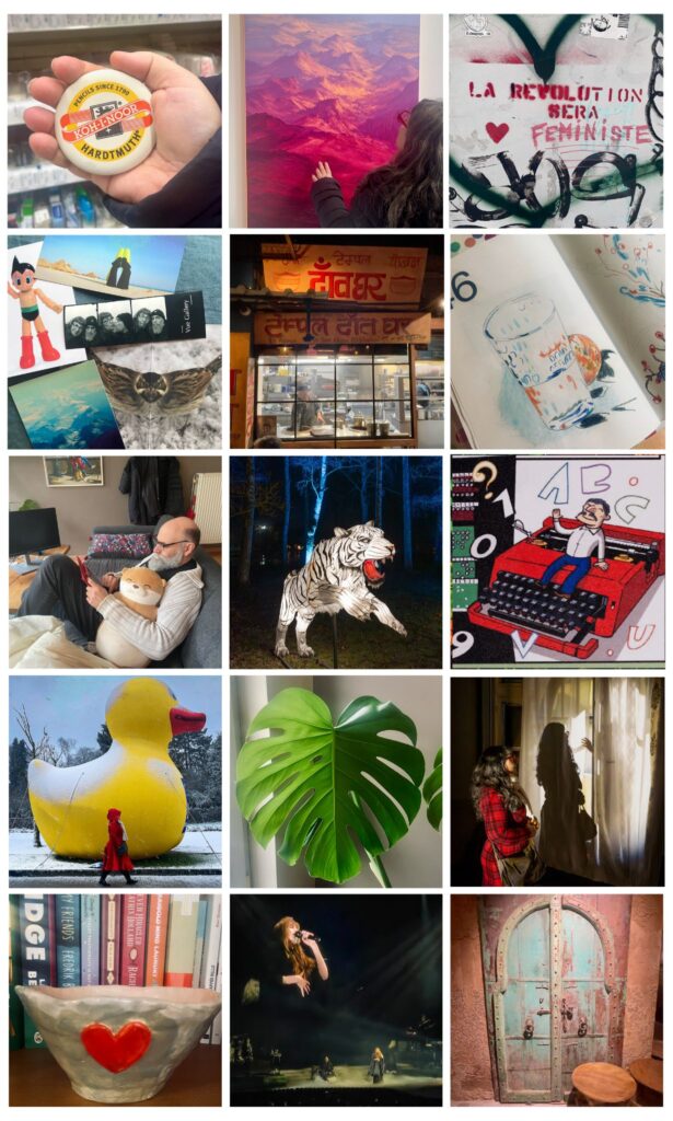 Je me suis également investie dans mon projet 365 de dessin/graphisme. J’ai réussi comme j’en avais l’intention à remplir une page de carnet par jour, même s’il m’est arrivé plusieurs fois de sauter un jour par manque de temps ou d’inspiration et de rattraper le lendemain. J’ai suivi deux ateliers d’art journaling, un en ligne avec Lucia Leyfiled et un en présentiel avec Laura Giraud. Je me suis essayée à différents médiums, commençant enfin à utiliser des feutres et des crayons qui traînaient sur mes étagères depuis des années. Pour l’instant, je ne maîtrise absolument rien du point de vue technique. Je tâtonne, je cherche, je me rate une fois sur deux, et c’est parfois frustrant mais aussi très amusant.